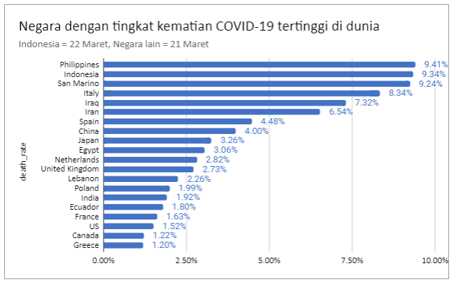Catchmeupid On Twitter Saat Ini Indonesia Memiliki Tingkat Kematian Covid19 Tertinggi Ke 2 Di Dunia 9 34 Data Indonesia Per 22 Maret 2020 Data Negara Lain Per 21 Maret 2020 Data Johns Hopkins University