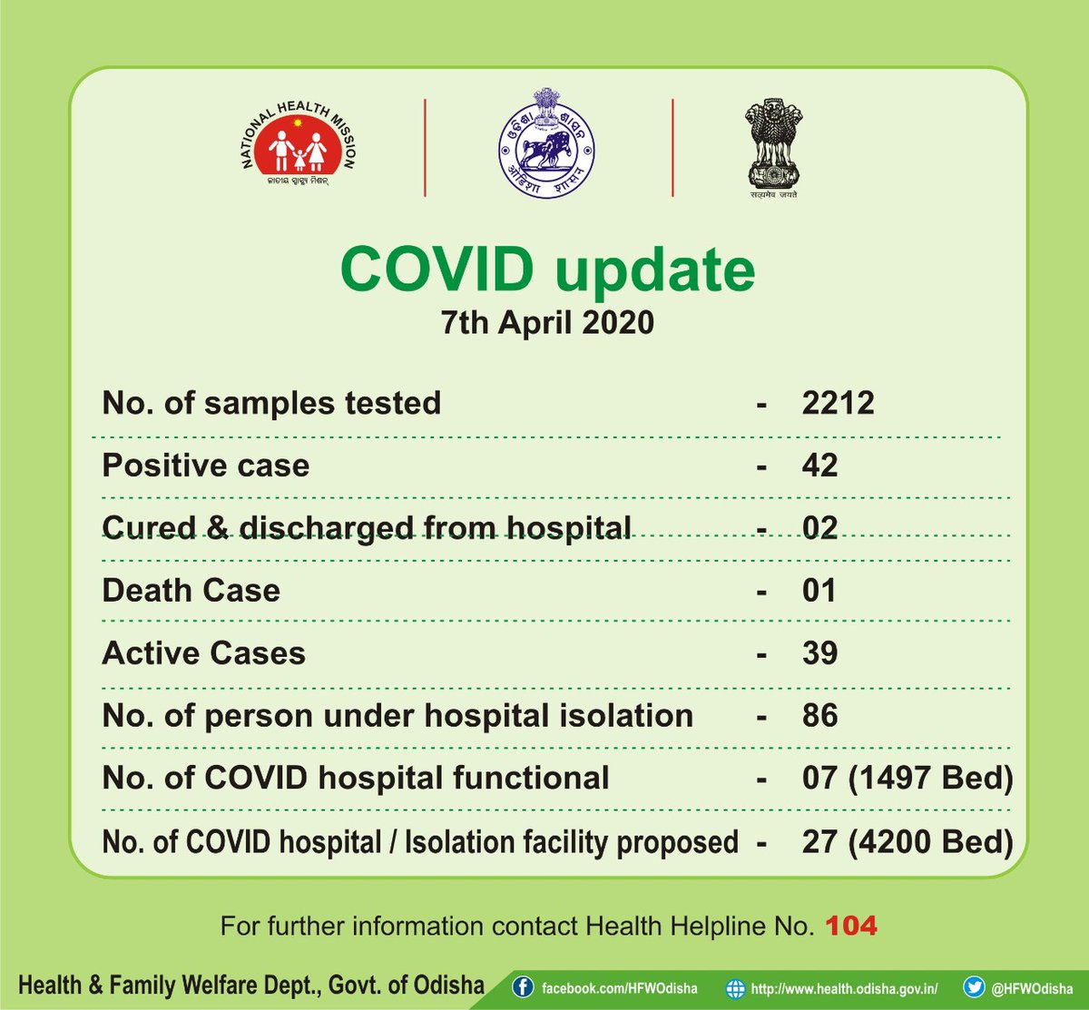 H Fw Dept Odisha On Twitter Latest Update On Covid19 Has Been Provided Below Till Now 2212 Samples Have Been Tested 42 Cases Have Been Tested Positive For Any Health